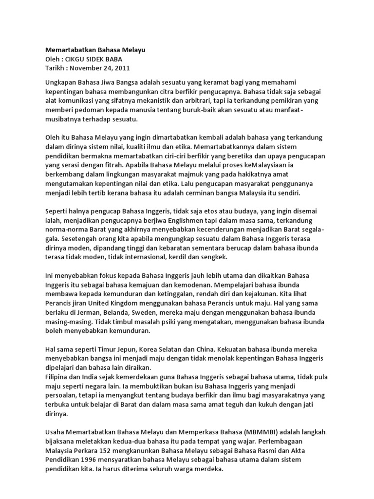 Kesan Tidak Memartabatkan Bahasa Melayu Pdf
